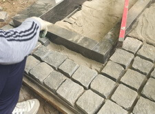 Укладка гранитной брусчатки,